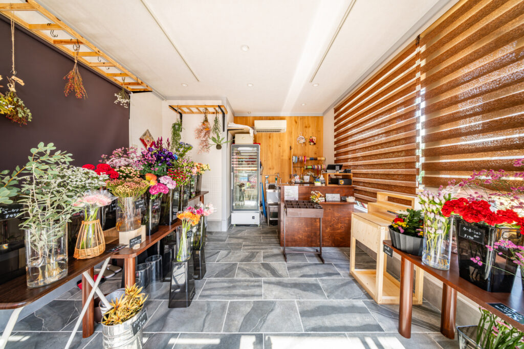 【お花がもっと映える空間へ】ローラーストーンとウッドデッキで彩る店舗改修工事